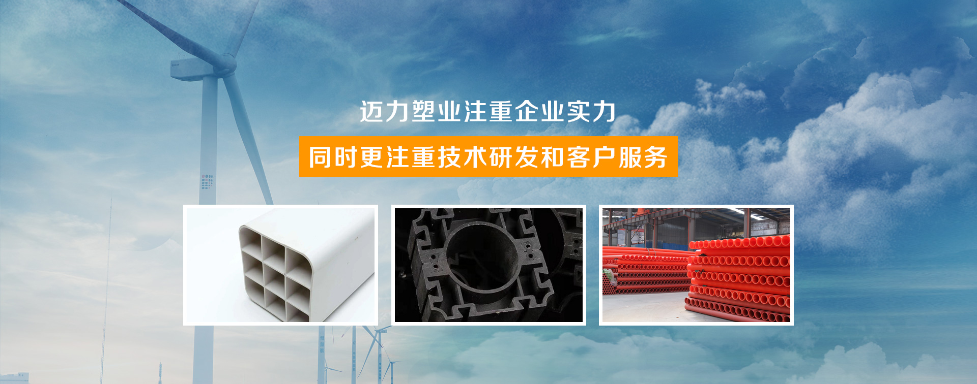 無錫邁力塑業科技有限公司地處長江三角洲蘇錫常經濟發達區,坐落于江南名鎮--華士鎮,緊鄰天下第一村“中國華西村”,緊靠沿江高速華西道口,距上海130公里、南京150公里,地理位置優越,交通十分便捷。 本廠創辦于2010年,全廠職工總數為42名,工程師技術人員5名,擁有國內先進的錐形雙螺桿、單螺桿擠出生產線9條,是專業生產PE頂管、PVC-U埋地式普通電力電纜管套、PVC-C高壓電纜套管、MPP電纜套管等管材、管件、BWFRP電纜管拉擠纏繞管。 本廠研制生產的埋地電力通訊電...